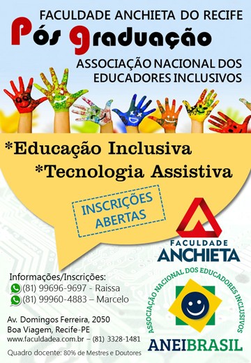 A Faculdade Anchieta do Recife, juntamente com a Associação Nacional dos Educadores Inclusivos, abre inscrições para Pós-graduação em Educação Inclusiva e Tecnologia Assistiva.